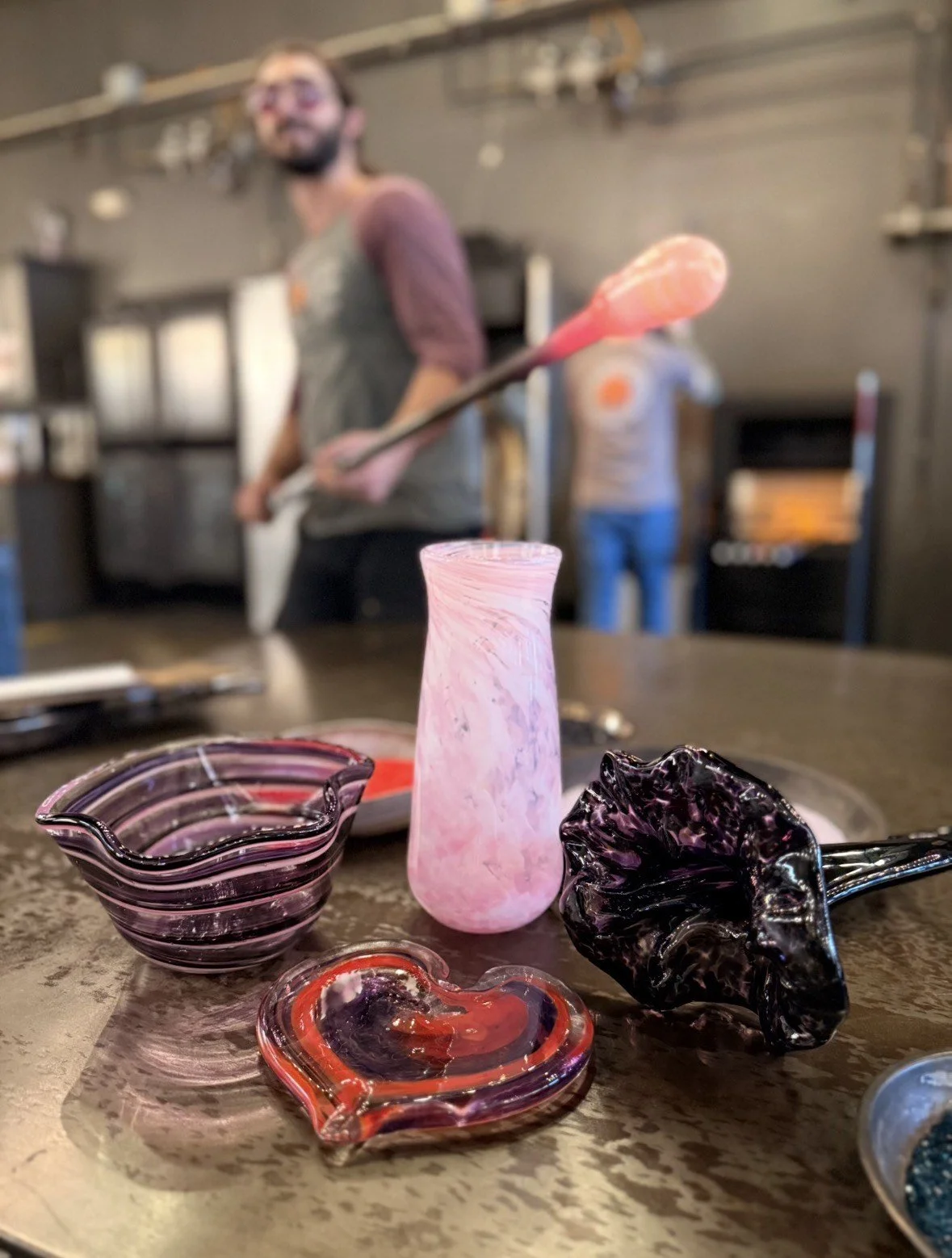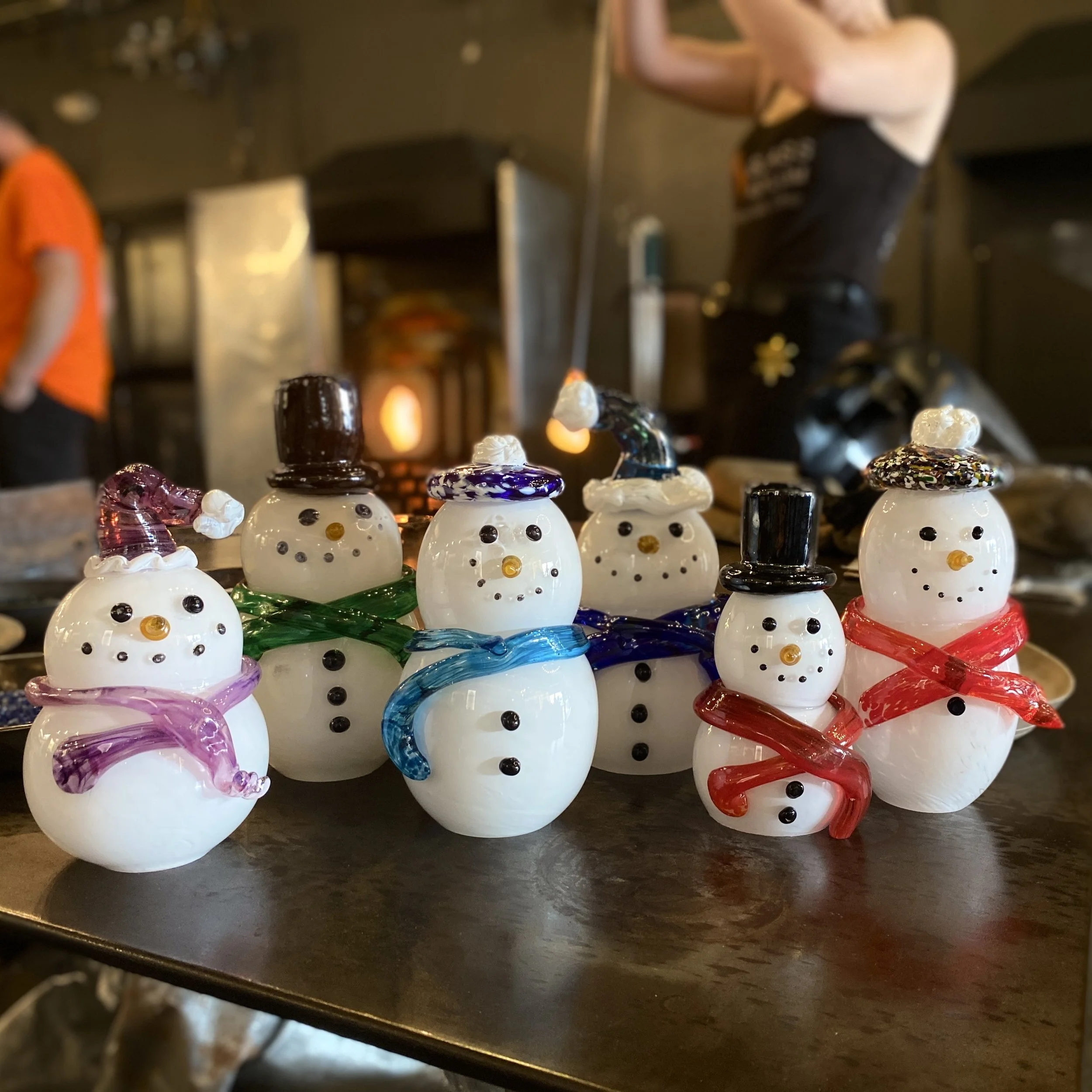 The length of your experience may vary depending on our schedule for the day. An average workshop experience lasts for 1-1.5 hours for a group of 2-4 guests. It typically takes about 15-30 minutes per person actively in the hot shop depending on the item you choose to create. Please expect to add around 30-45 minutes of time if you are attending a class during our busy season (Oct-Dec) and on Saturdays. Some pieces do take longer to create than others, and creating art is never an exact science!